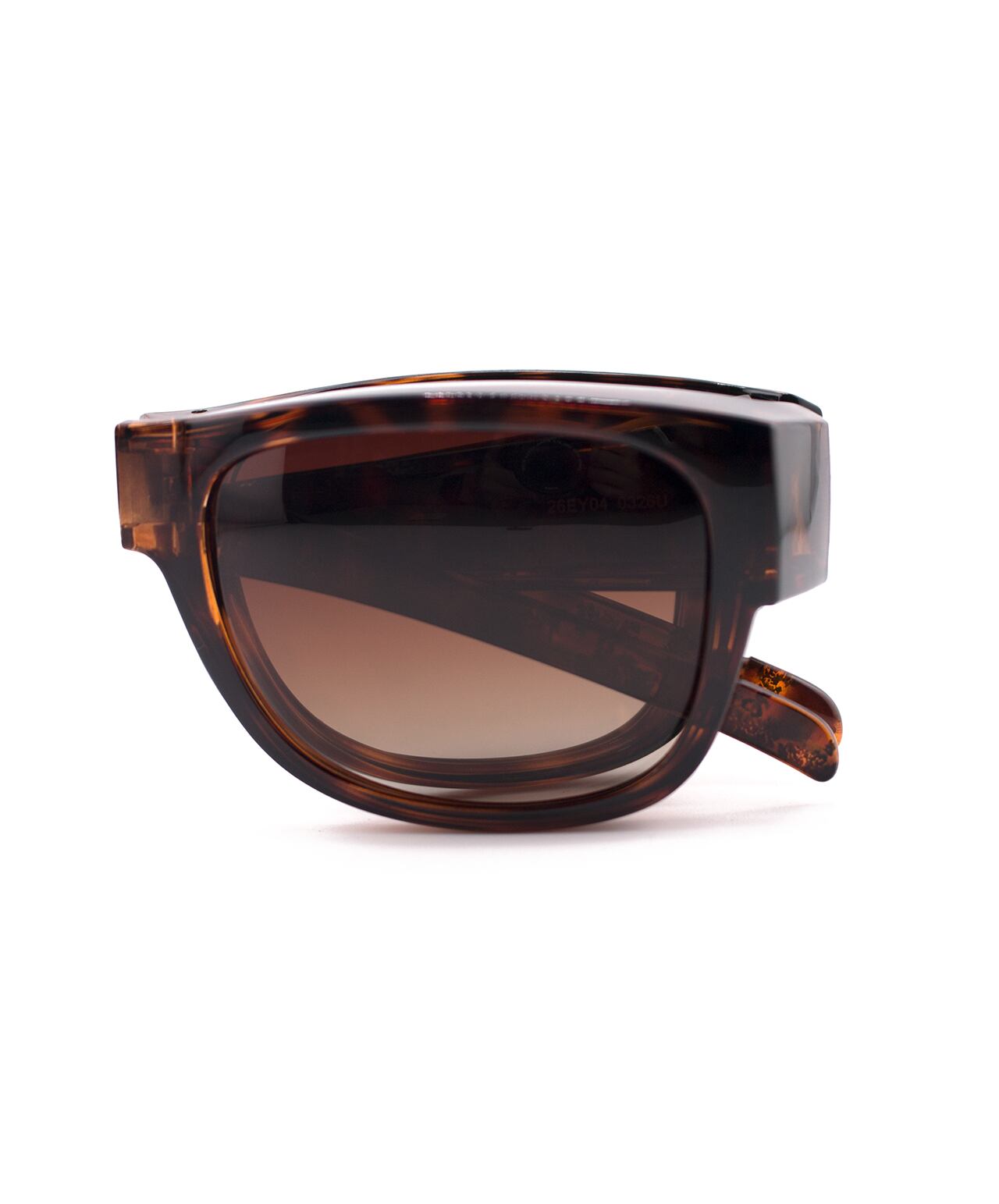 コンパクトに折りたためるオーバーグラス。メガネの上から着けられます。専用ケース付で持ち運びにも便利です。