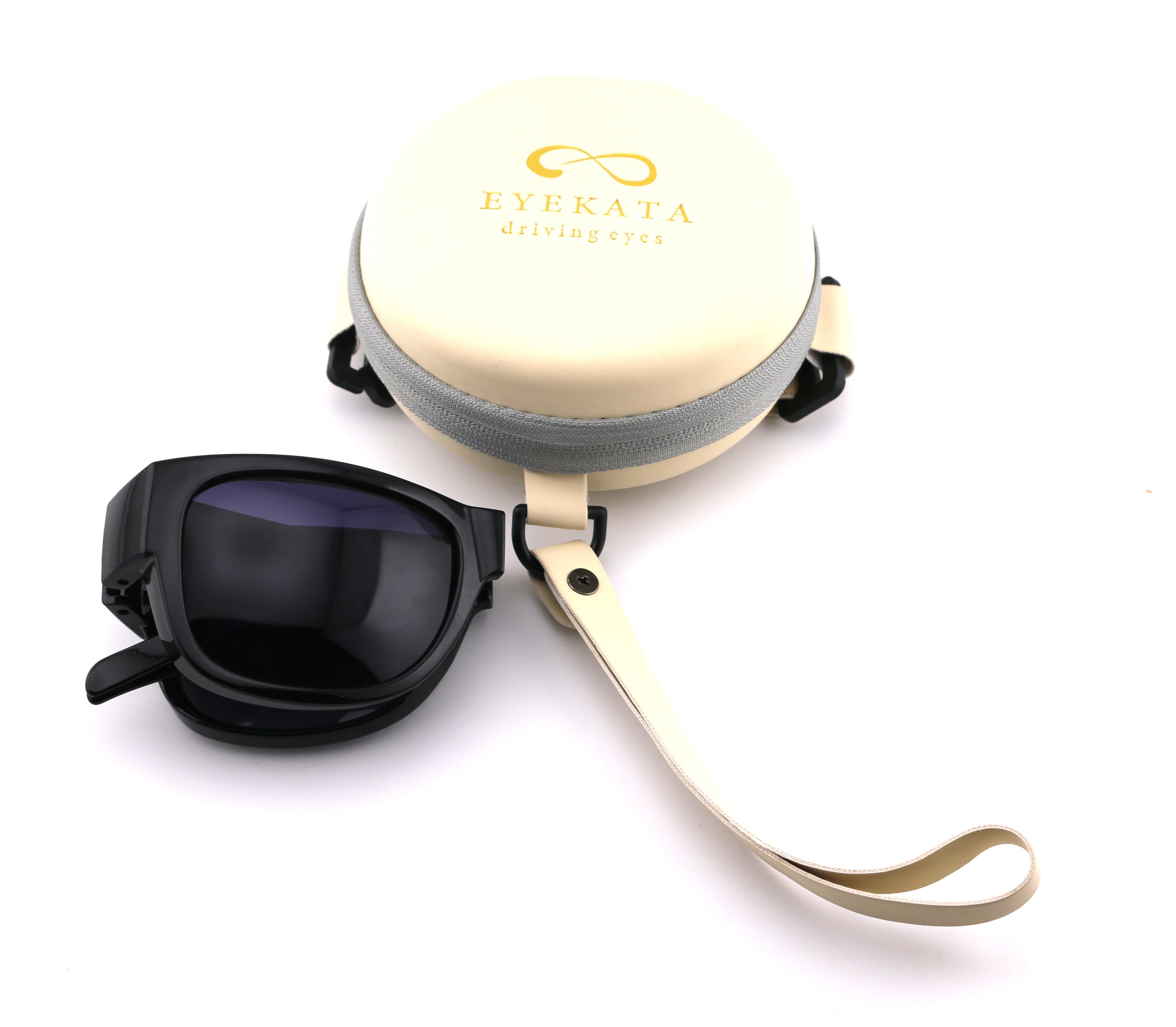 コンパクトに折りたためるオーバーグラス。メガネの上から着けられます。専用ケース付で持ち運びにも便利です。